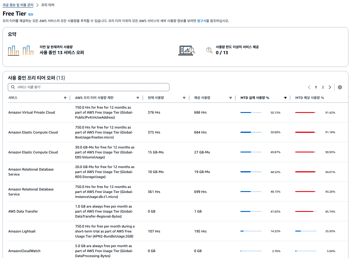 - AWS 프리 티어 사용량 제한