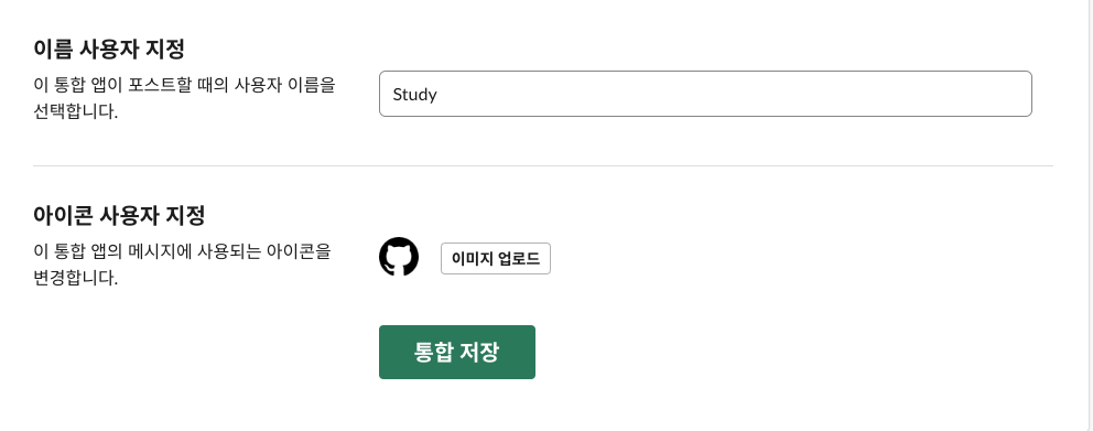 - 채널에 포스트 - 알림을 받을 채널 설정 - GitHub 통합 추가