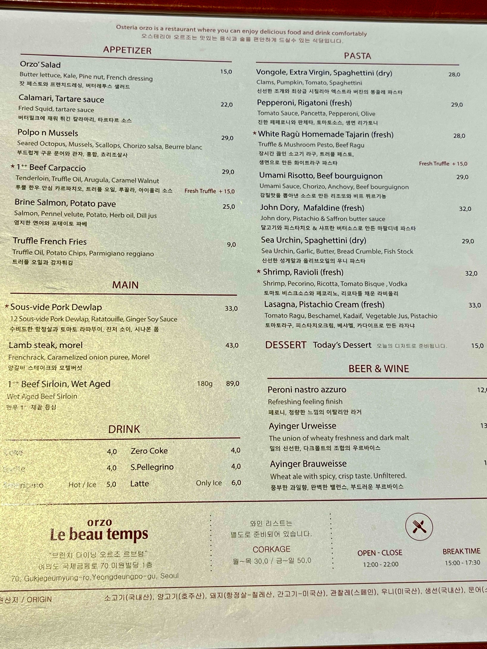 오스테리아 오르조, 서울 용산구 한남대로20길 47, 내돈내산