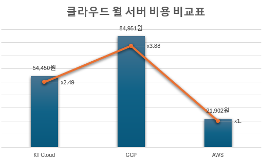 클라우드 서버 비용 최적화를 위해 KT Cloud, Google Cloud Platform (GCP), Amazon Web Services (AWS)의 서비스 비용을 비교해보았다.