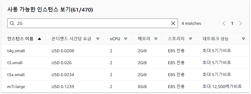 - CPU : 2 core, Memory : 2GB = $14.976 ~ $16.848/월 ≒ 19,468원 ~ 21,902원/월