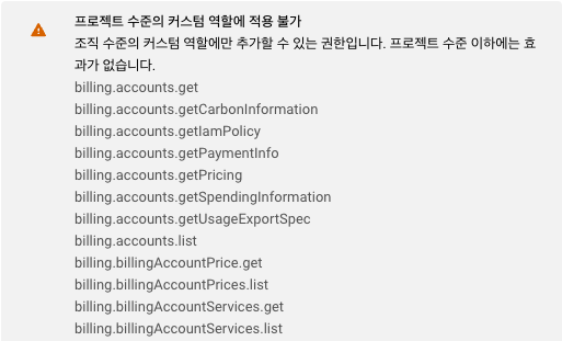 - 커스텀 역할: 사전 정의된 역할로 필요한 사항을 조직에 충족할 수 없는 경우 조직의 필요에 맞게 생성하는 커스텀 역할입니다.