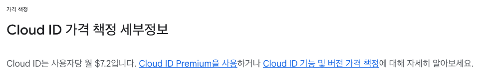 - 비용 발생하는 포인트 = 사용자당 $7.2/월(Google ID), $6/월(Google Workspace)