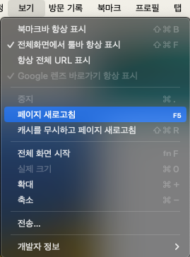 - 메뉴 제목 : 크롬 - 보기 - 페이지 새로고침 과 동일해야 한다.