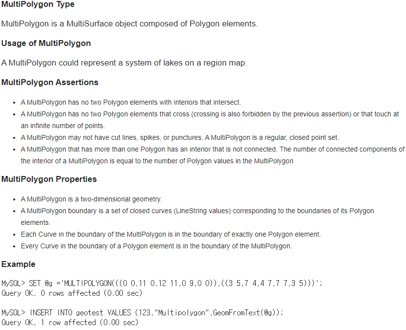 - geometry(MultiPlygon) 요소는 자체 공간 DB 구축 시 참고하면 될 듯 (지번 or 토지와 매칭)