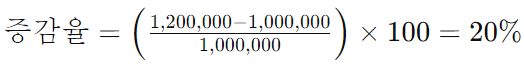 - 예를 들어, 최초 수치가 1,000,000이고 최종 수치가 1,200,000인 경우 증감율은 다음과 같이 계산됩니다.