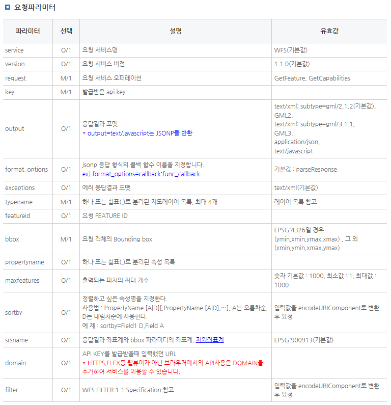 - 클라이언트는 관심 레이어, 필터, 좌표체계, 요청범위, 요청포맷 등 설정 후 서버 요청